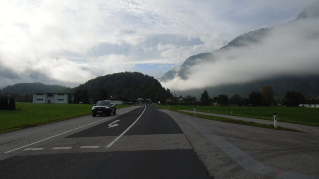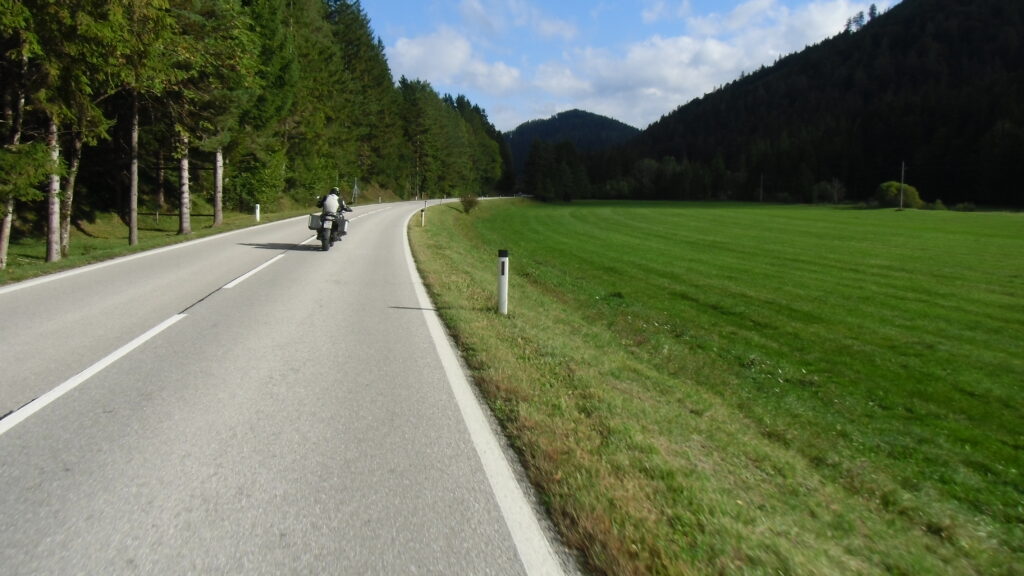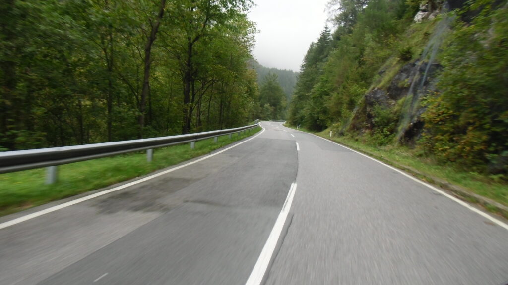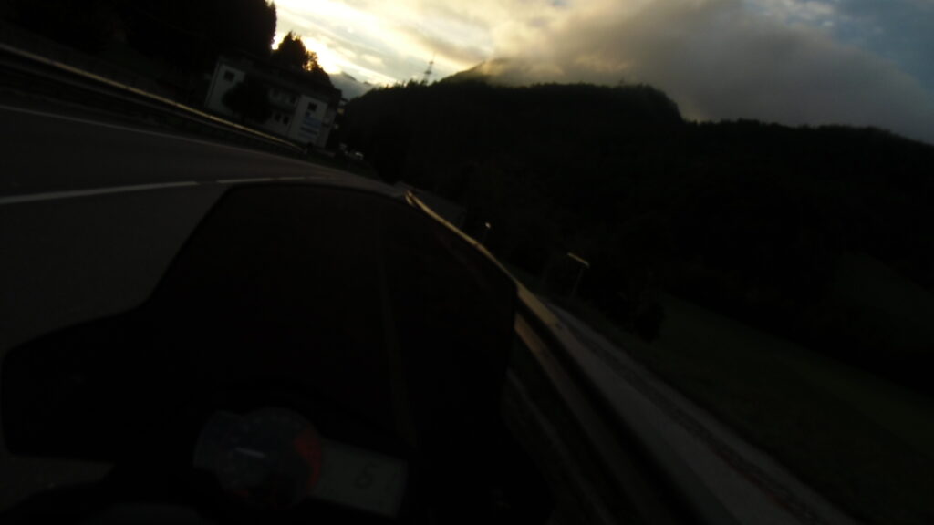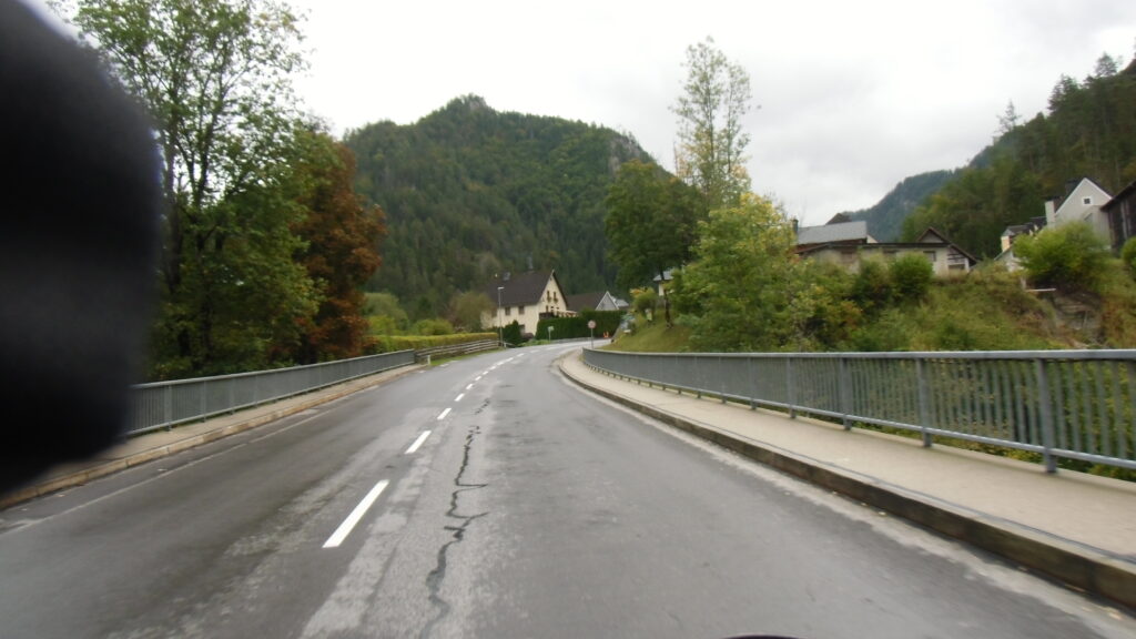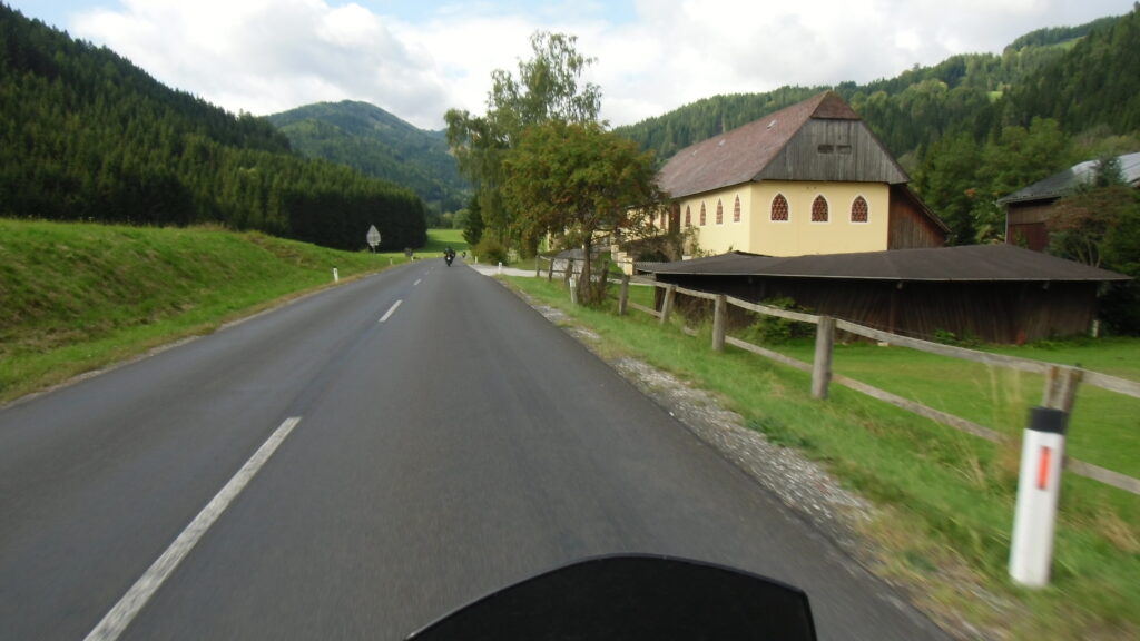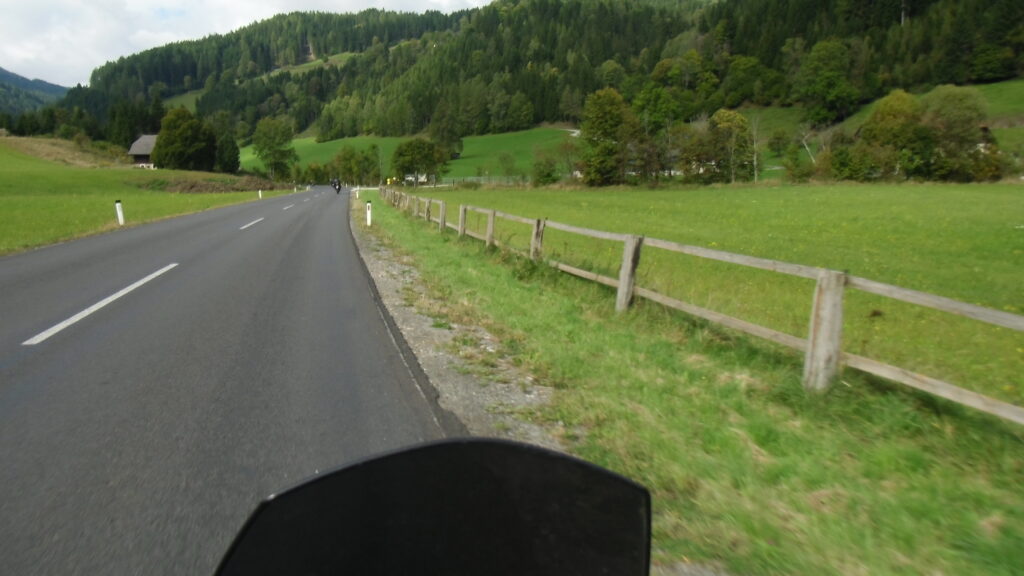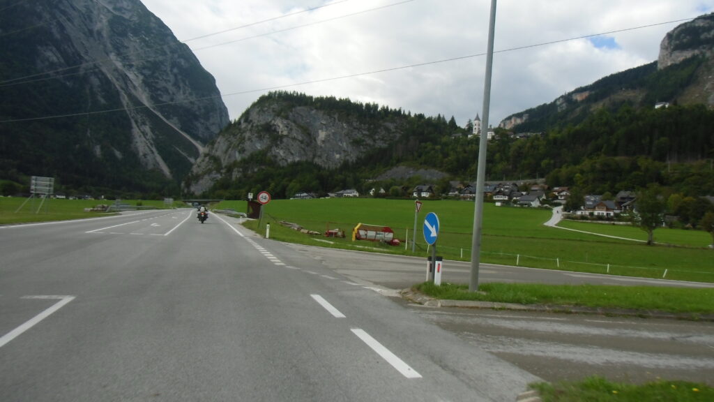 also rüber übern Erzherzog schlaglochpisten pass,.. aber den hams vor paar Jahren an den schlimmsten stellen neu geteert,. .. unten in Stein , rechts anstatt links was das Navy sagt hätt,.. abgebogen und der Alten Enztalstraße folgend Rtg. Liezen, und zuvor links rauf die Schnellstraße über Bag Mitterndorf Rtg. Salzburg…. irgendwo war grad Markt-stau zu bewältigen, …. aber in Fuschl a. See vorm Red Bull Büro rechts, rauf, / rüber nach Thalgau,.. unsagbar Geil de Streck,.. und natürlich dann noch weiter meine Geheimstrecken bis Laufen,.. Waging, Palling , Altenmarkt,. und weils noch nicht glangt die Hausstreckn nach Seebruck zur Kupferschmieden,.. dort noch schnell paar Sonntagsfahrer mein drekerts Moped zeigen und die Nase lang machen..