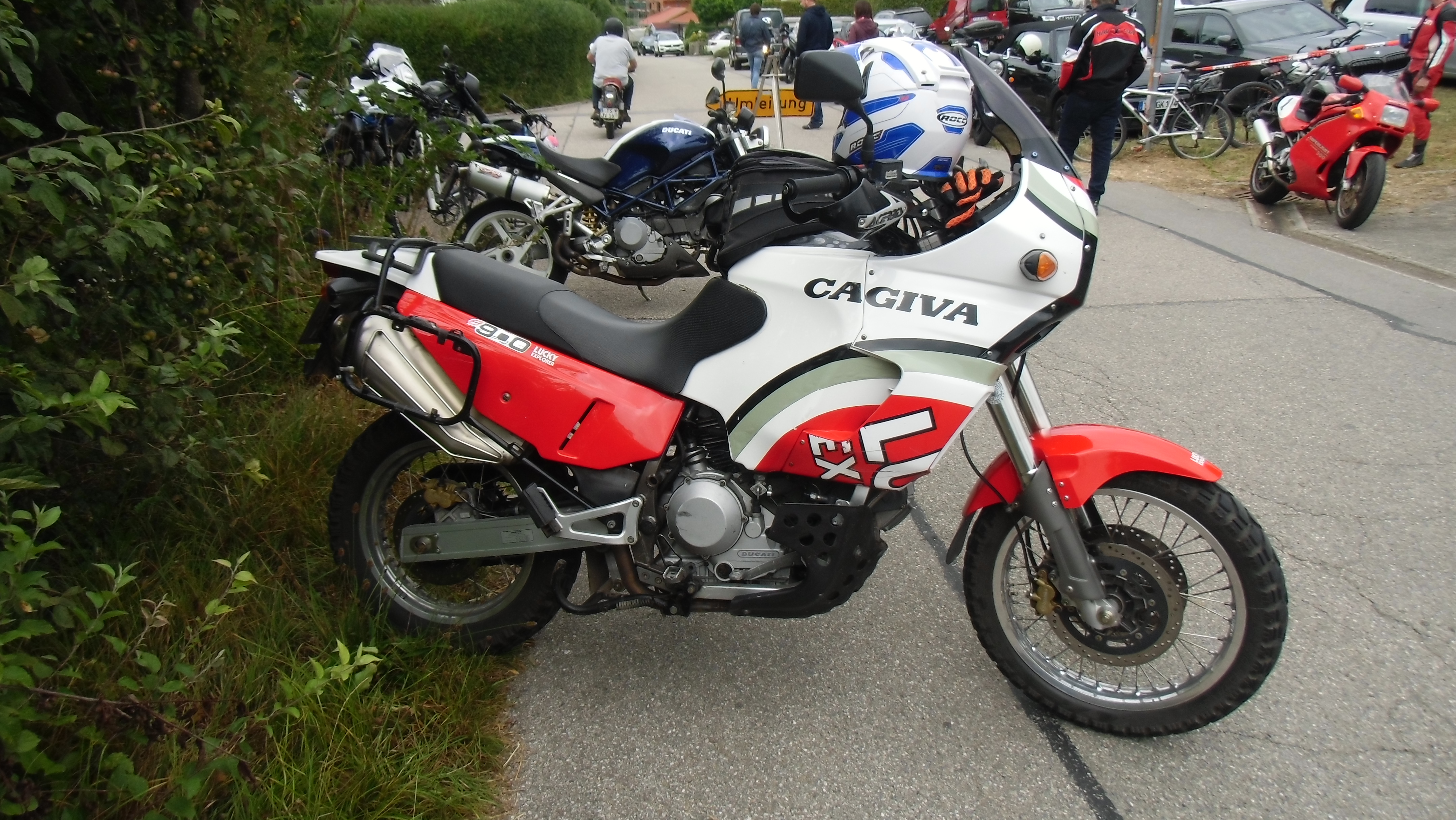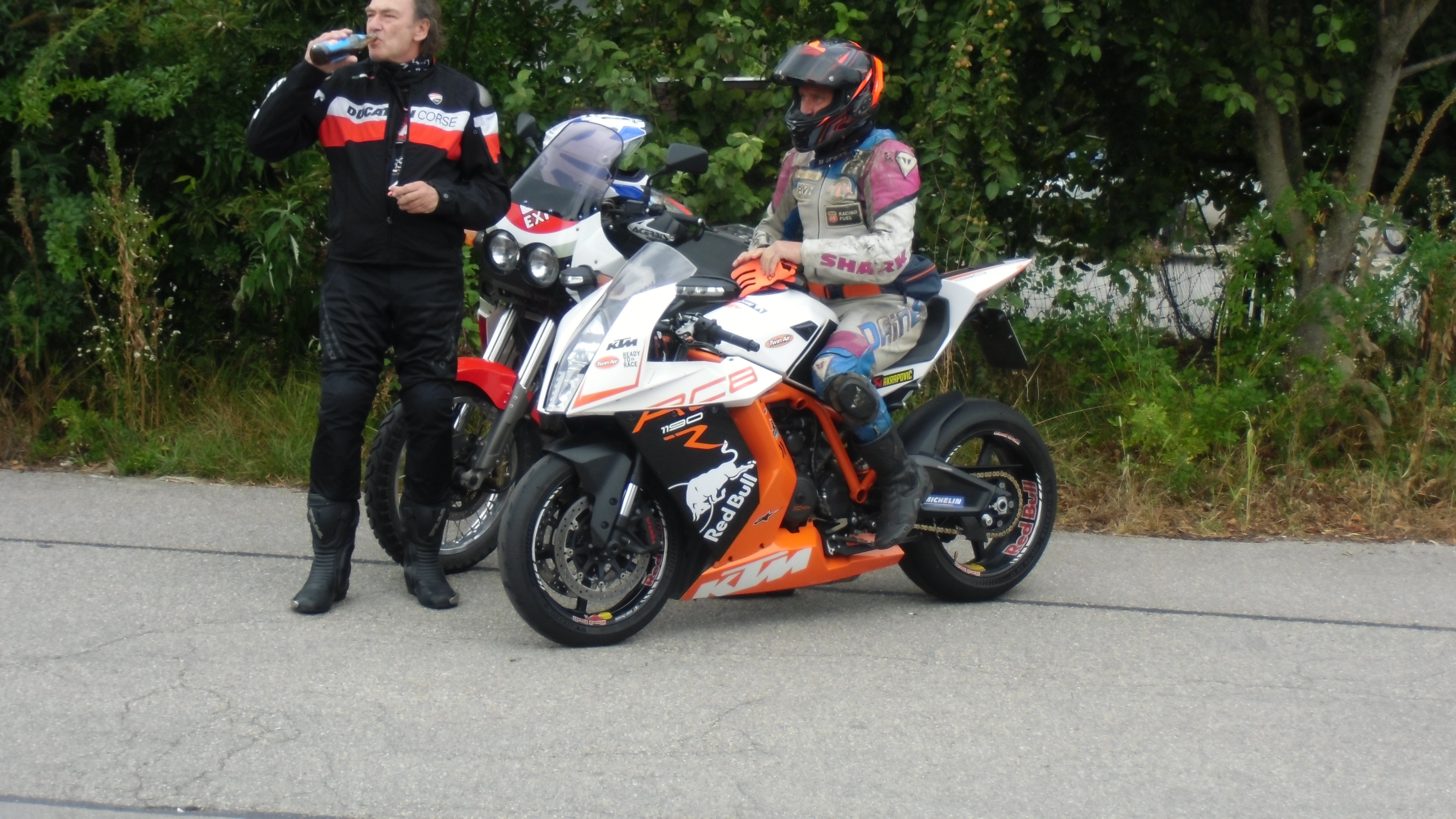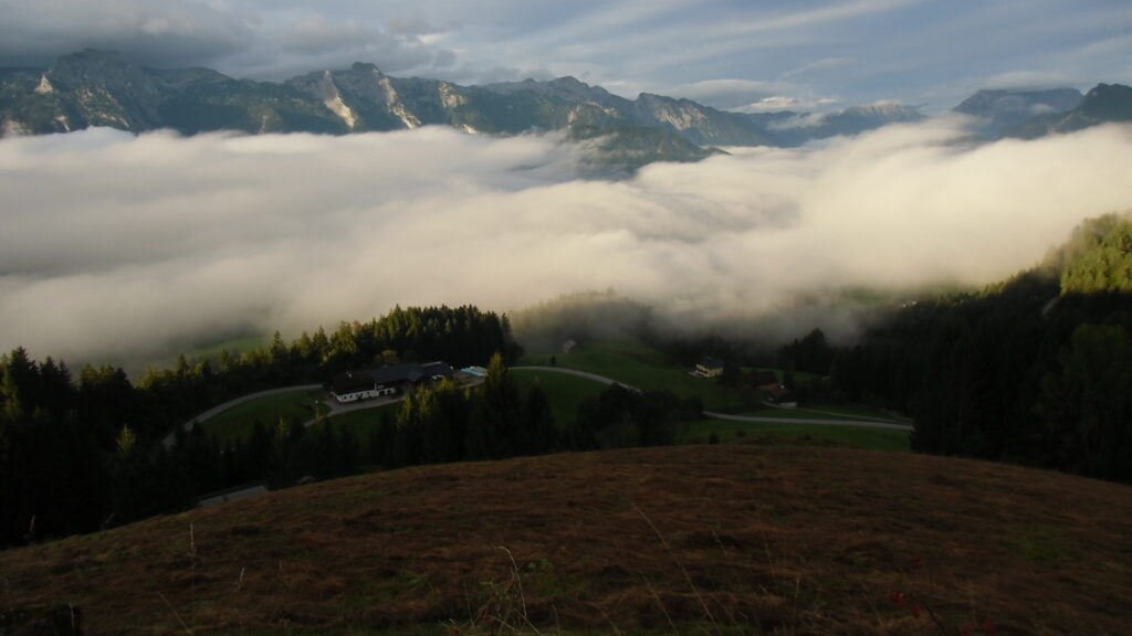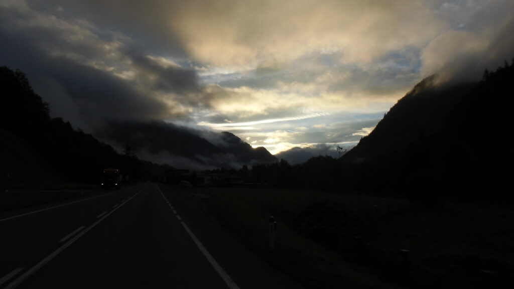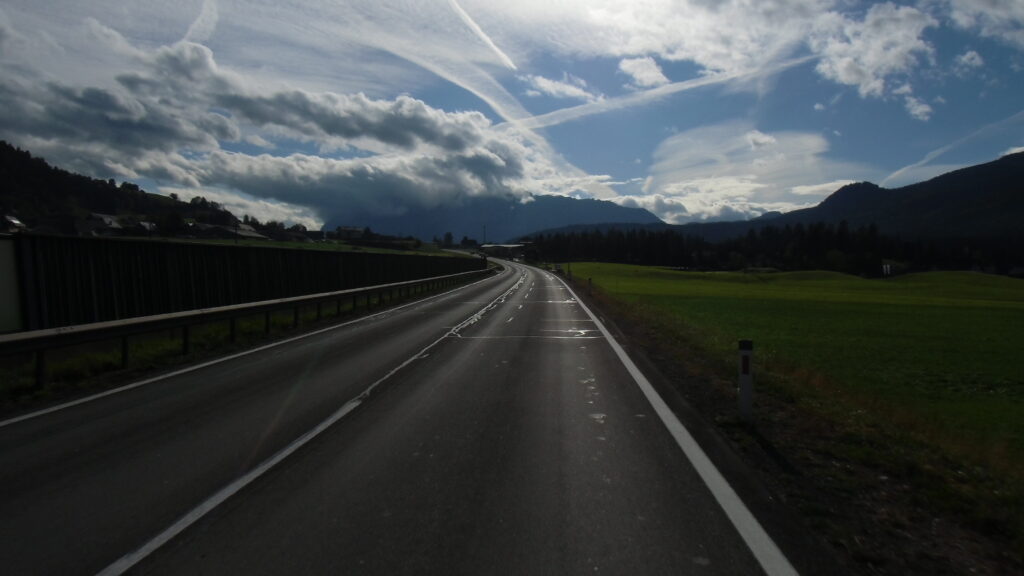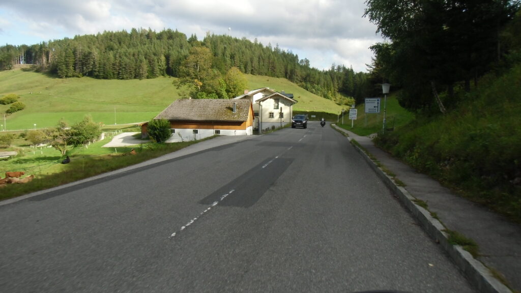 also rüber übern Erzherzog schlaglochpisten pass,.. aber den hams vor paar Jahren an den schlimmsten stellen neu geteert,. .. unten in Stein , rechts anstatt links was das Navy sagt hätt,.. abgebogen und der Alten Enztalstraße folgend Rtg. Liezen, und zuvor links rauf die Schnellstraße über Bag Mitterndorf Rtg. Salzburg…. irgendwo war grad Markt-stau zu bewältigen, …. aber in Fuschl a. See vorm Red Bull Büro rechts, rauf, / rüber nach Thalgau,.. unsagbar Geil de Streck,.. und natürlich dann noch weiter meine Geheimstrecken bis Laufen,.. Waging, Palling , Altenmarkt,. und weils noch nicht glangt die Hausstreckn nach Seebruck zur Kupferschmieden,.. dort noch schnell paar Sonntagsfahrer mein drekerts Moped zeigen und die Nase lang machen..