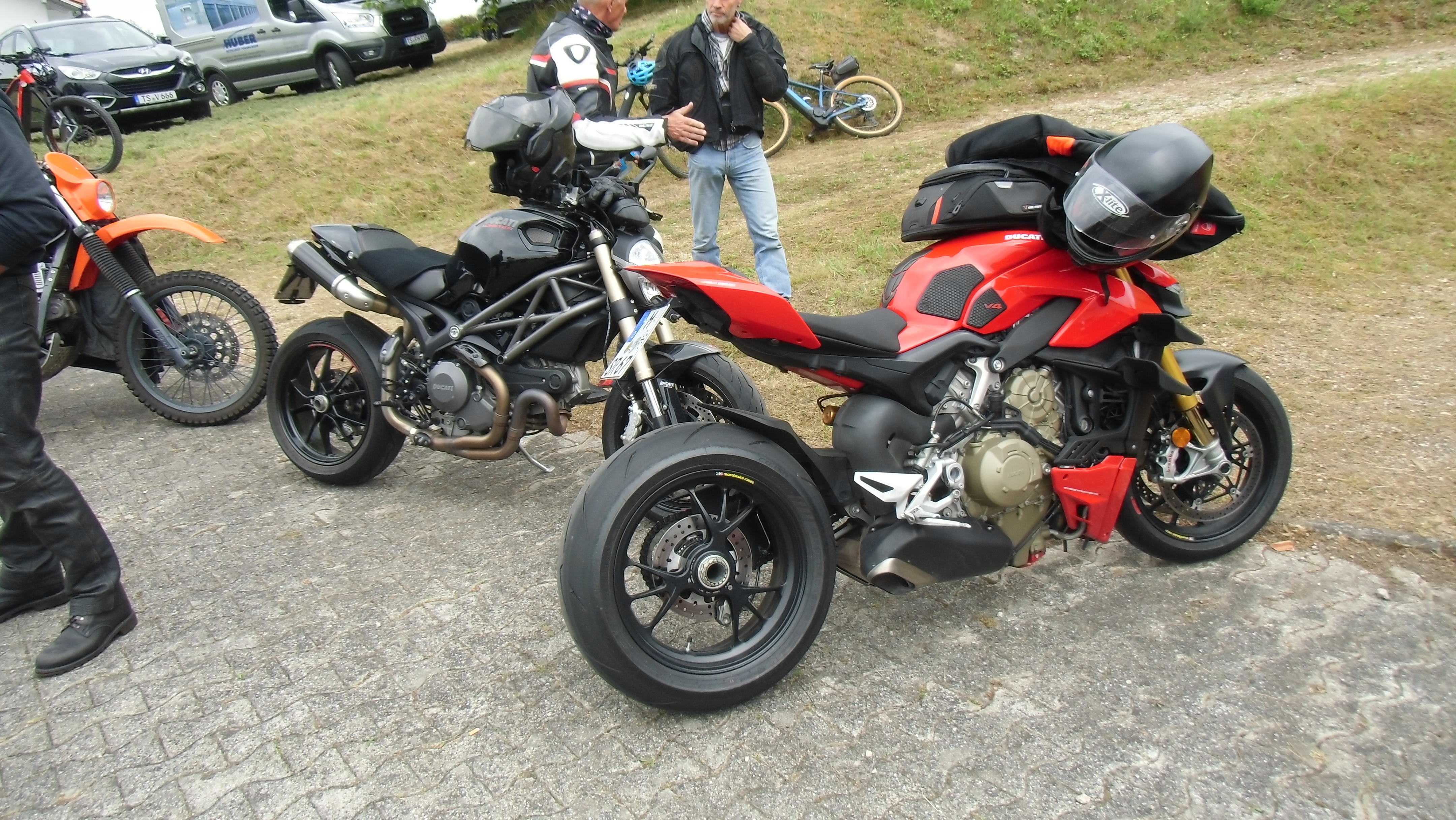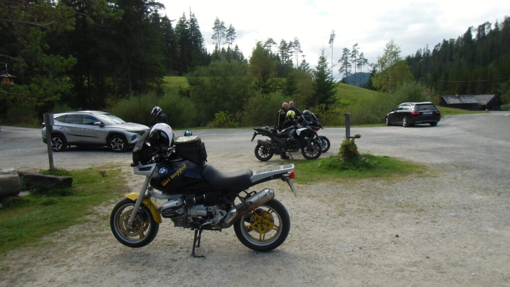 Sonntag Abreisetag, alles wieder auf die Karre drauf, incl. Batterie damits Weelyfahren leichter geht, und ohne Autobahn übern Semmering und noch paar andre geile Pässe mitgenommen , vorbei am A1 Ring zum nächsten Mittagswirt am Sölkpass, .. der einfachheit halber hab ich da auch wieder Schnitzel gegessen, beim Wirt war gerade die Rennleitung da,.. die sind aber dann beim Fahren in die andere Richtung gefahren,.. / war uns schon lieber..