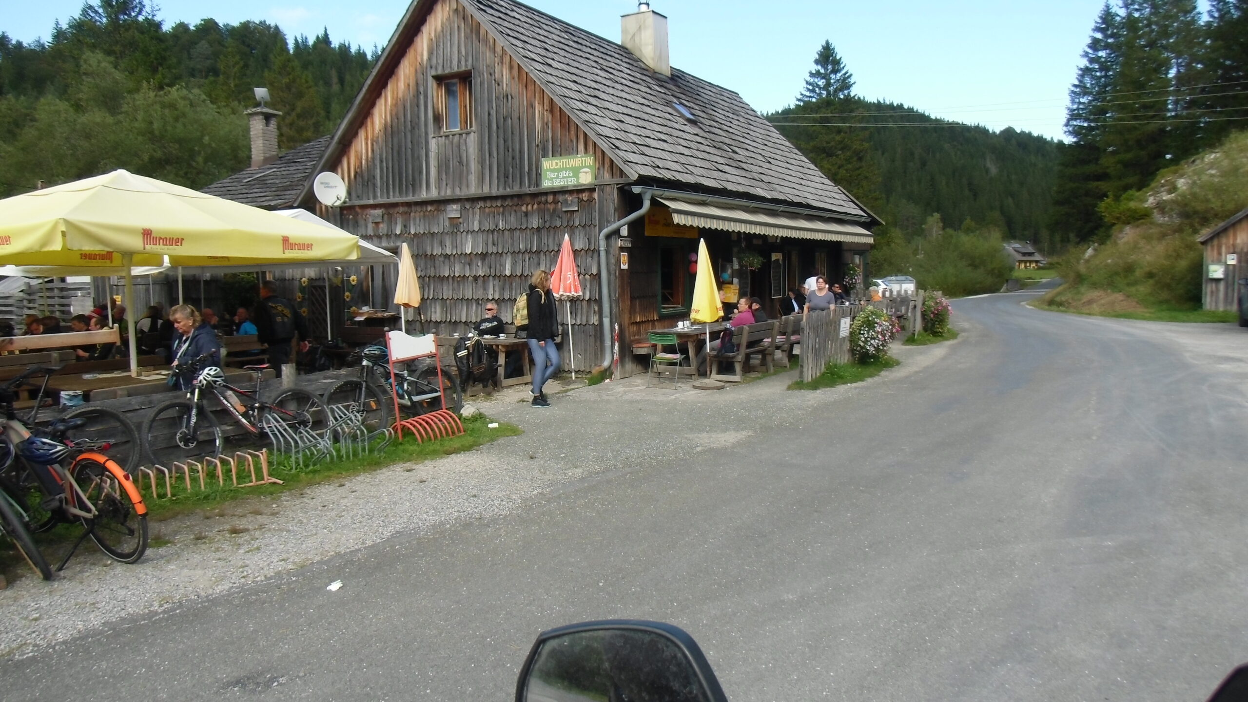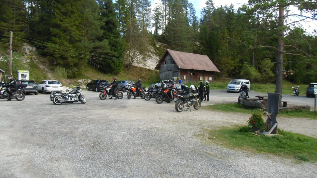 also 30 Motorräder Rtg. Mittagsziel einem Wirt noch gut hinter Maria Zell.. da sind dann auch alle hungrigen eingetroffen, zwischendurch hats uns im Gesäuse mal Gewaschen, aber alle da,.. von hier gings wahlweise mal ins Gebirge oder etwas verkürzt zum Hotel vor Wiener Neustadt